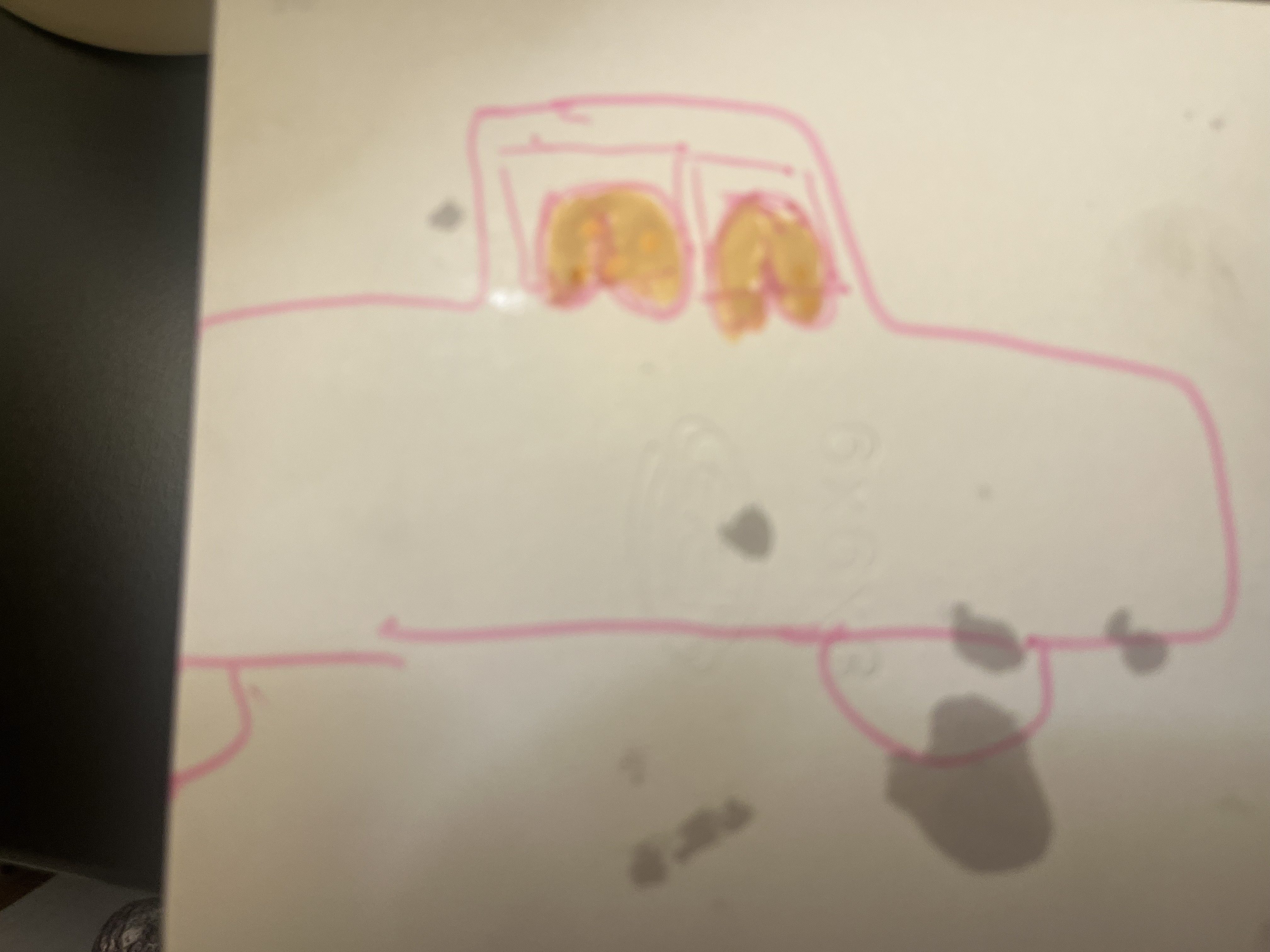 So we’re going along, having a nice ride, and it’s broad daylight. And what do we see: a full moon. And not just one full moon. Two. And they are bigger than the harvest moon. And they are cruising by us at 60 miles per hour, hanging out the window of, you guessed it, a pickup truck.
