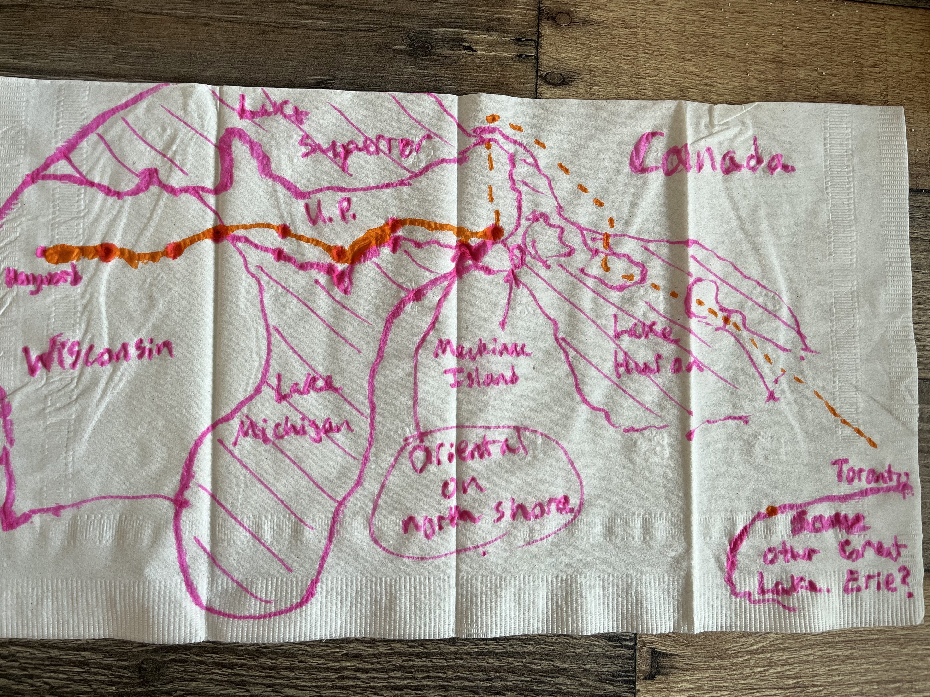 And because I am now a successful explorer – maybe not Lewis & Clarke, I’ll grant you – but up there with Nicolet, and the Duluth guy who discovered, well, Duluth, I decided that I would, for the sake of posterity and, more important, science, provide a 100% accurate, true and correct, map of our travels.