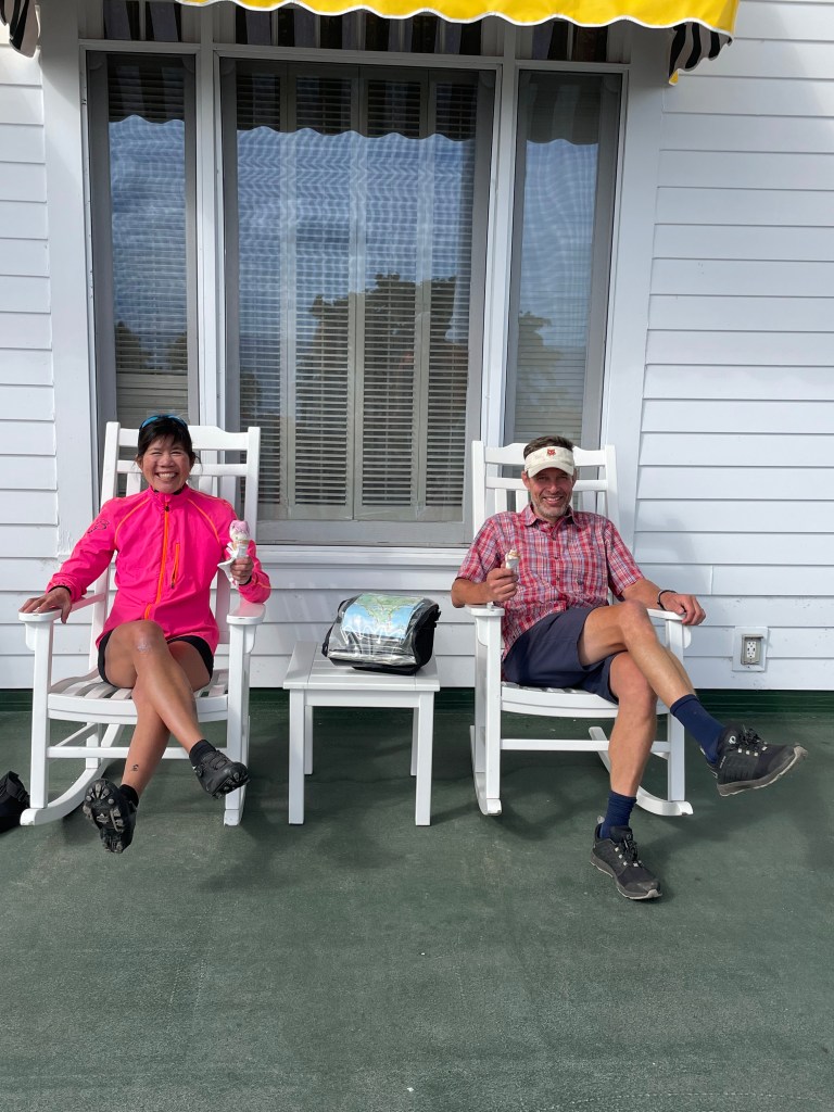 I ponder our options. No, that sounds too rational. My mind goes into afib – skipping between 73 thoughts in about a nanosecond – none of them making any sense . . . I’m thinking I’m going to run to the terminal before someone has a chance to take the bikes off of the island on the next ferry! Hmm. No. What? Where are our bikes?!!!?