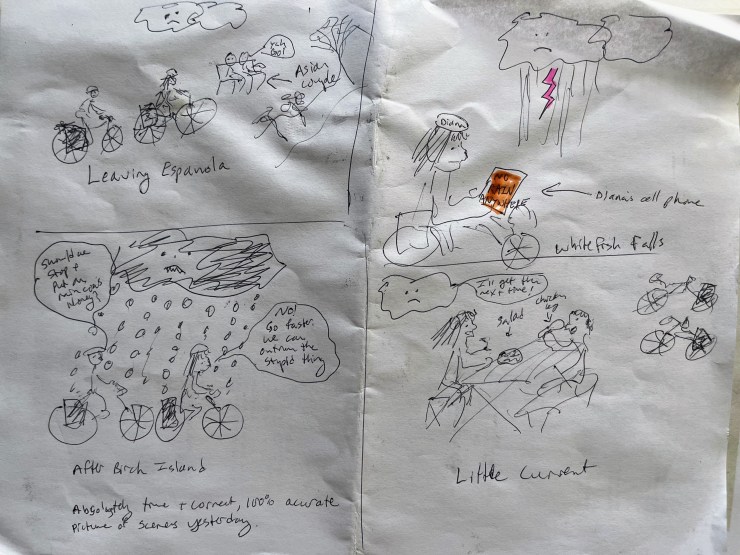 There we had a great late breakfast and chatted with four older women who told us what we had in store for ourselves for the rest of the day: lots of hills and a twisty turny road down toward Manitoulin Island. Did I mention that Canadians are super friendly? They are.