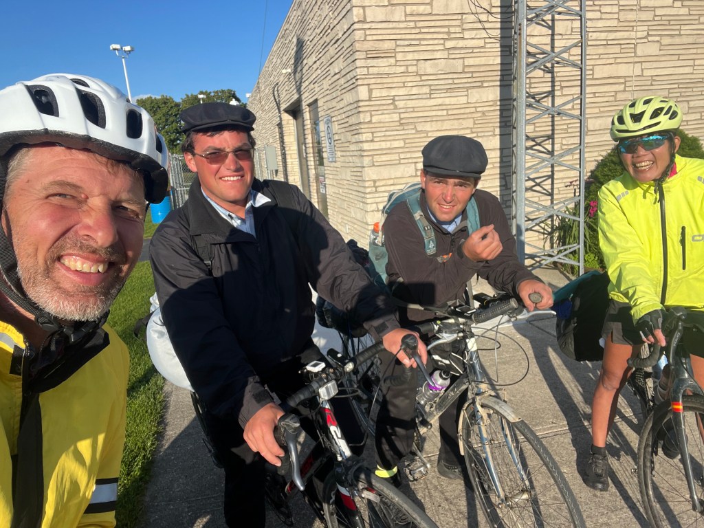 But pride is a sin – as any good Mennonite could tell you – and it is probably because we were so proud that we were first in line for the ferry, and clearly were Ferry Godmother’s favorites that – just in our moment of glory – as we took the picture of ourselves first in line – at that moment we met the other two young bikers headed onto the ferry.