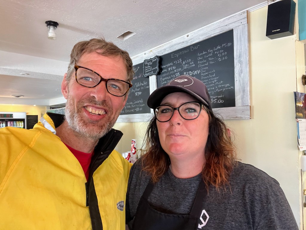 Now, my Mom told me I needed to be open minded and try poutine one of these days. I guess it’s a Canadian specialty. I’m not a huge french fry person, so I was a bit skeptical. But today’s lunch place – Cindy Lou’s in Lion’s Head – seemed to specialize in poutine. At least that’s what April, who was apparently in charge of the restaurant place today, was telling me. She says it’s the cheese curds that make poutine poutine.