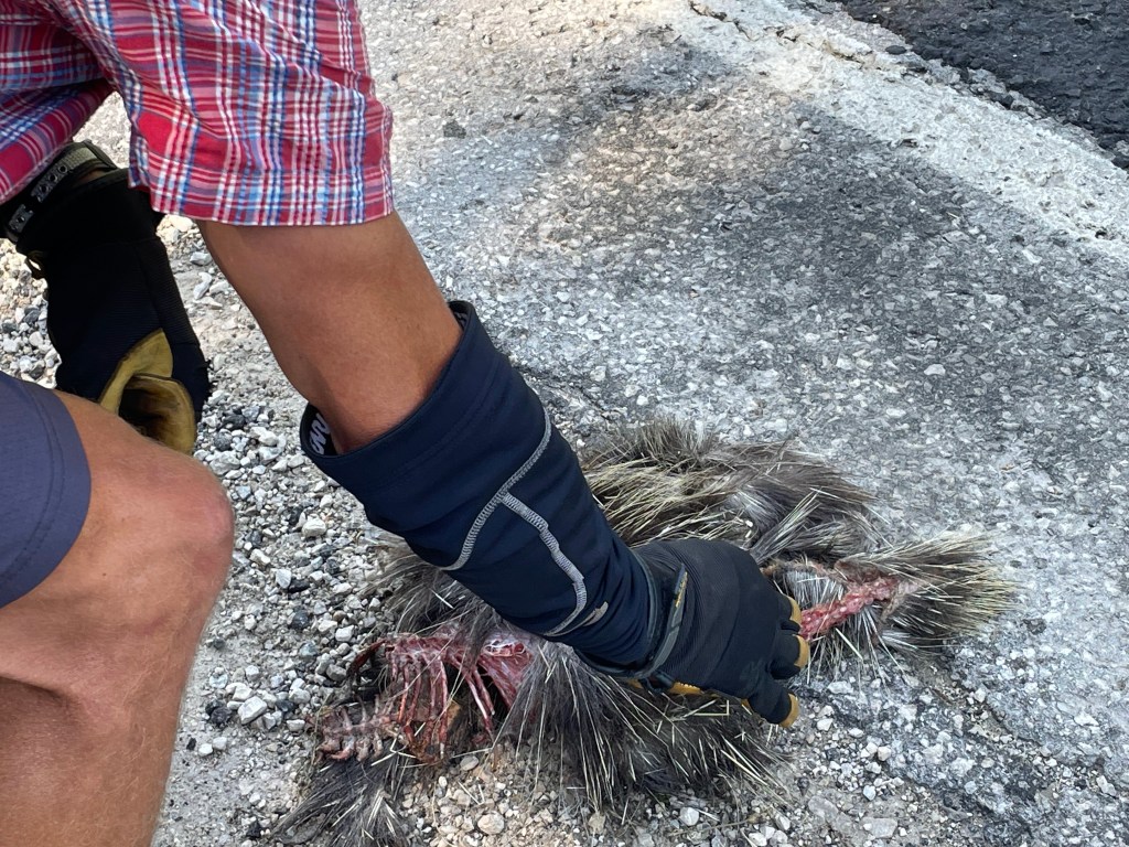 Sadly, this porcupine was – in the immortal words of Miracle Max in the Princess Bride – “all the way dead” – meaning, for Miracle Max, that the only thing left to do was go through the pockets looking for loose change.