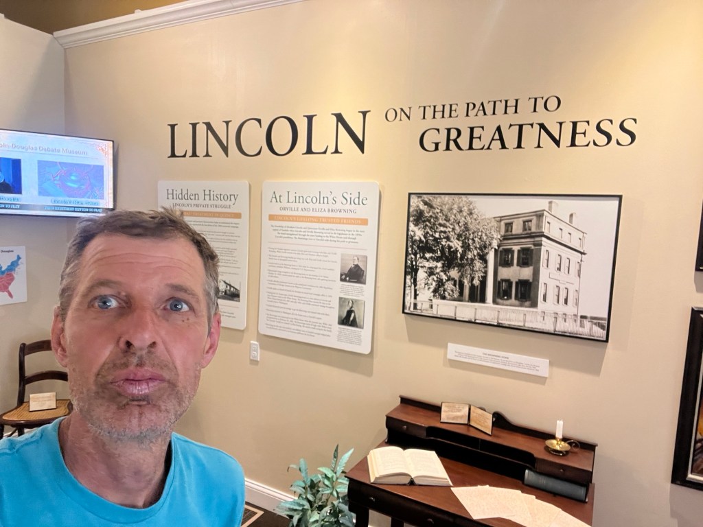 Talked to some locals who gave us great advice about must-dos in Quincy and the best way of biking to Hannibel. At their recommendation we ended up enjoying some time in the Lincoln-Douglas Museum across the street (we were the second people to sign in the guest book for the week), and then biked by a block of grand old houses that were apparently built in the first half of the nineteenth century.