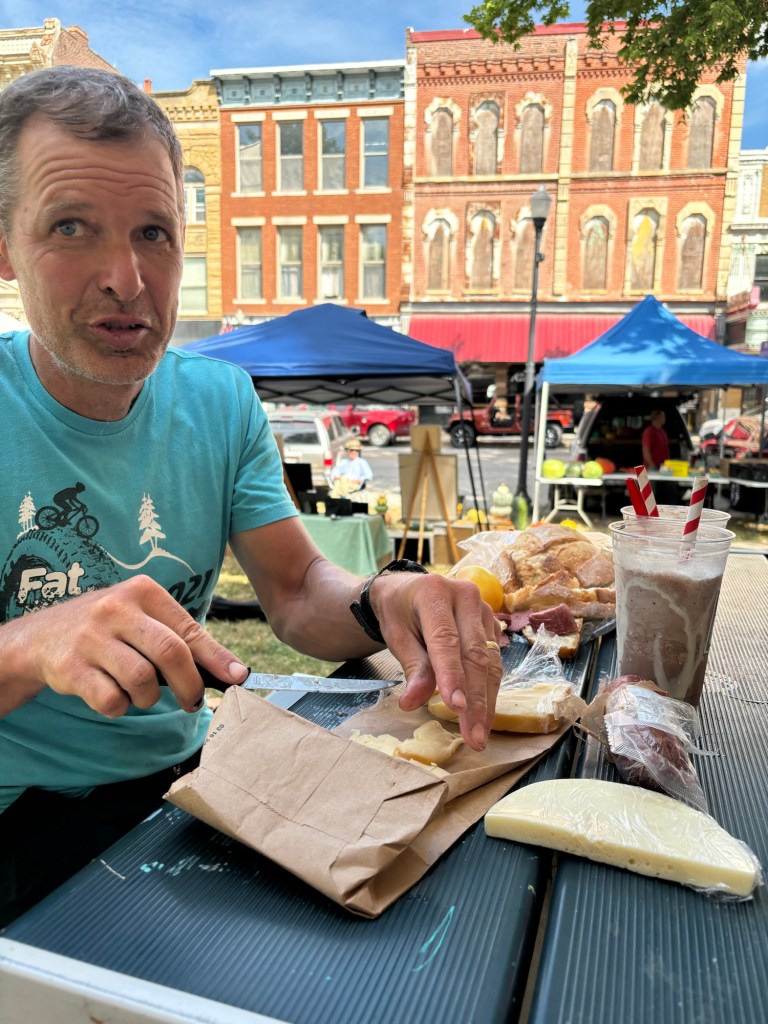 Anyway, we ended up finding a great farmer’s market, bought some sourdough bread, some Amish cheese (which apparently is just regular Swiss cheese – but made by the Amish), some homemade summer sausage, and an heirloom tomato. We used the remnants of yesterday’s butter, and had a wonderful lunch in the park.