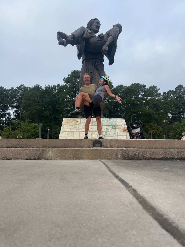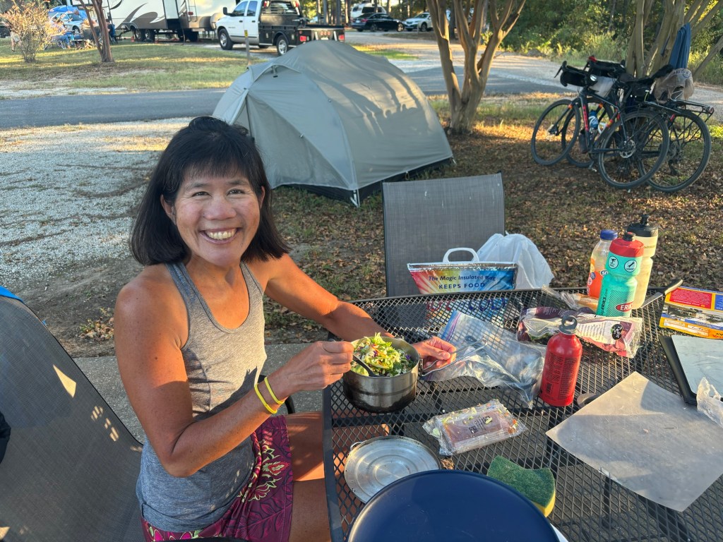 A little challenging to figure out a landing spot for tomorrow. Texas is so big that there seem to be some significant gaps without much there. Our tentative plan is to ride about 80 miles – probably our biggest day yet – in order to land at SJ’s RV Park. Probably not paradise – but what can you do? (There are no hotels, and the only other option seems to be Coleman Camping – which is basically a place where you rent old RVs and stay in them . . .)