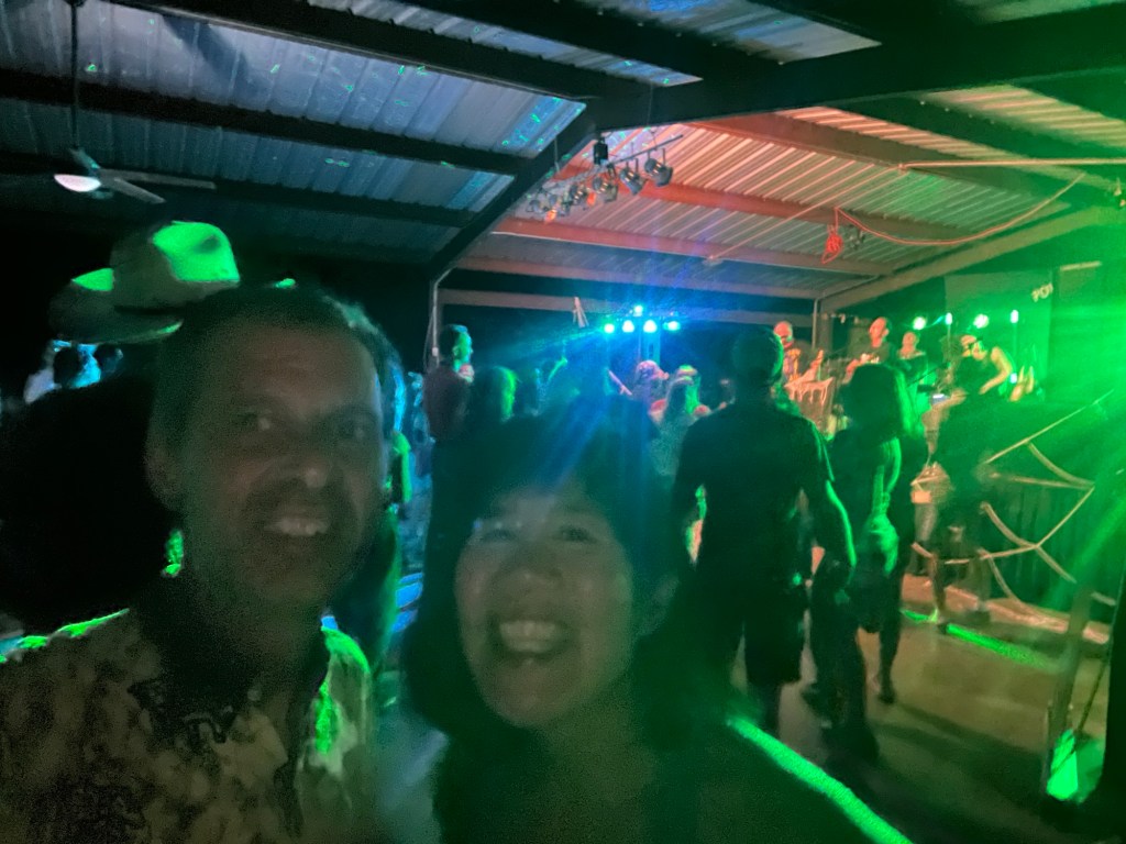 Late update . . . We went over to watch the bands a bit. I guess that was just the first of four or five bands. The guy we talked to said that he hopes the bands keep playing until 3 a.m.