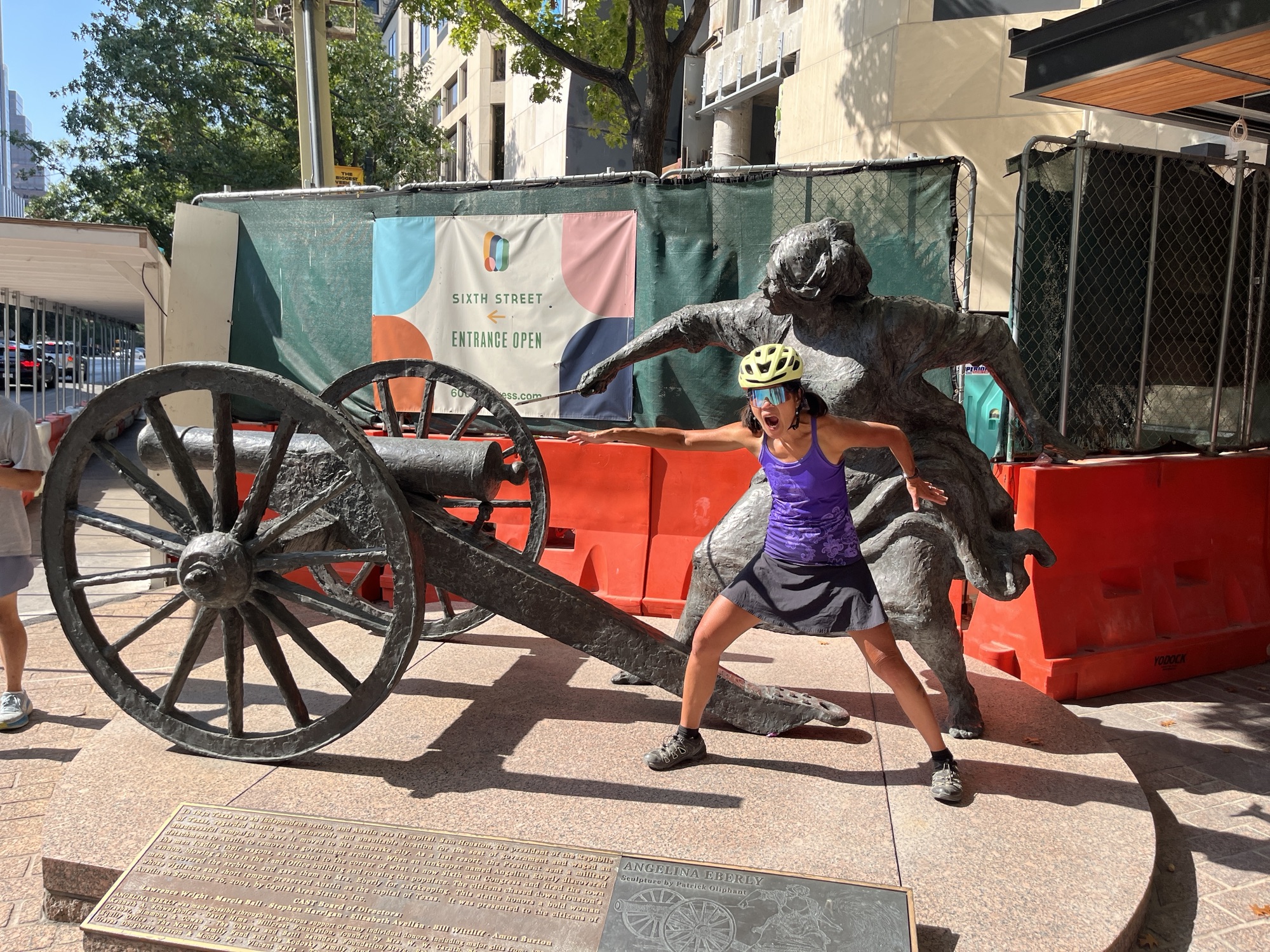 At this point Texas is its own independent republic. I guess Sam Houston, who had been the governor of Tennessee, is now the president of Texas. Sam wanted the capital of the new republic in Houston – his namesake town – so he sent troops to Austin to retrieve the Texas archives. But a young woman in Austin – an innkeeper named Angelina Eberly – single-handedly stopped the troops by firing off a cannon that must have been laying around. She’s a hero in Austin because she prevented old Sam from stealing the capital.