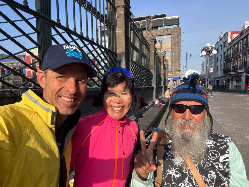 We didn’t get to see the main public square in Puebla by daylight yesterday so we headed back there for breakfast this morning. We found a nice big stone ledge to sit on right outside of the cathedral – but before we even set up breakfast we made fast friends with Emilio. Emilio is a Spanish professor who has worked all over the world. He seems to loves people and Mexico and helping people with their Spanish and with finding the wonders of his country.