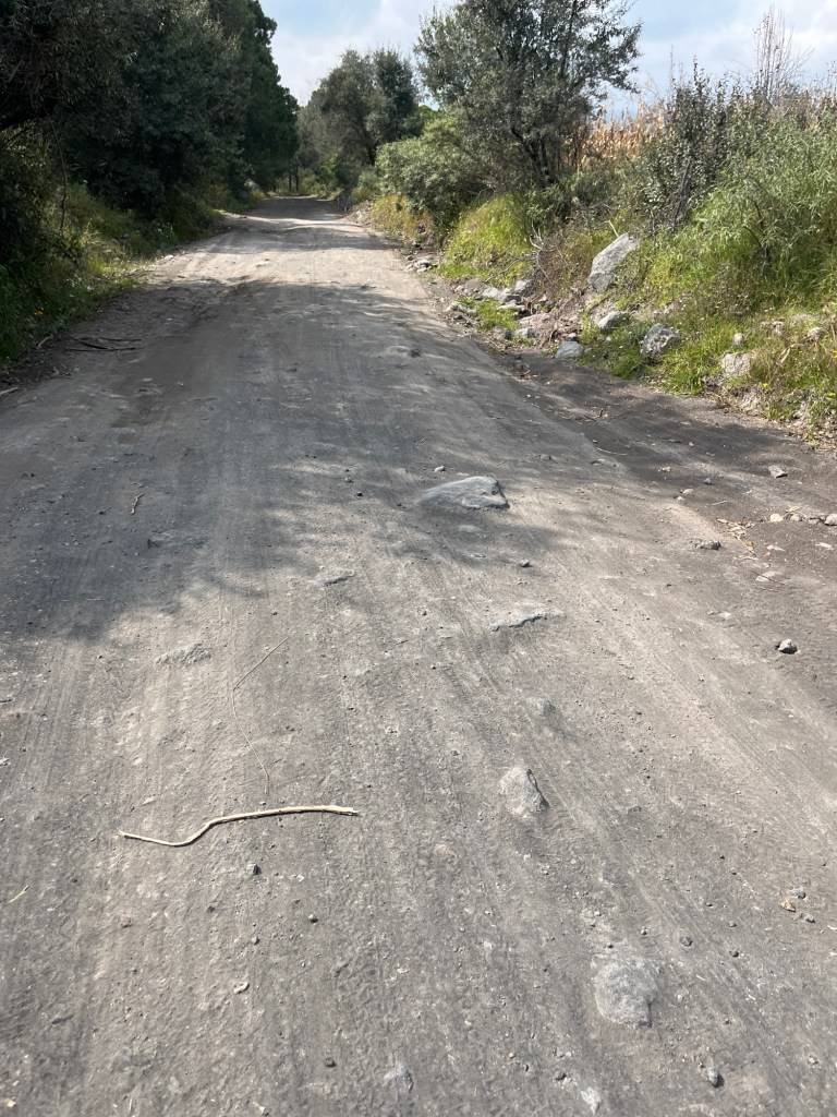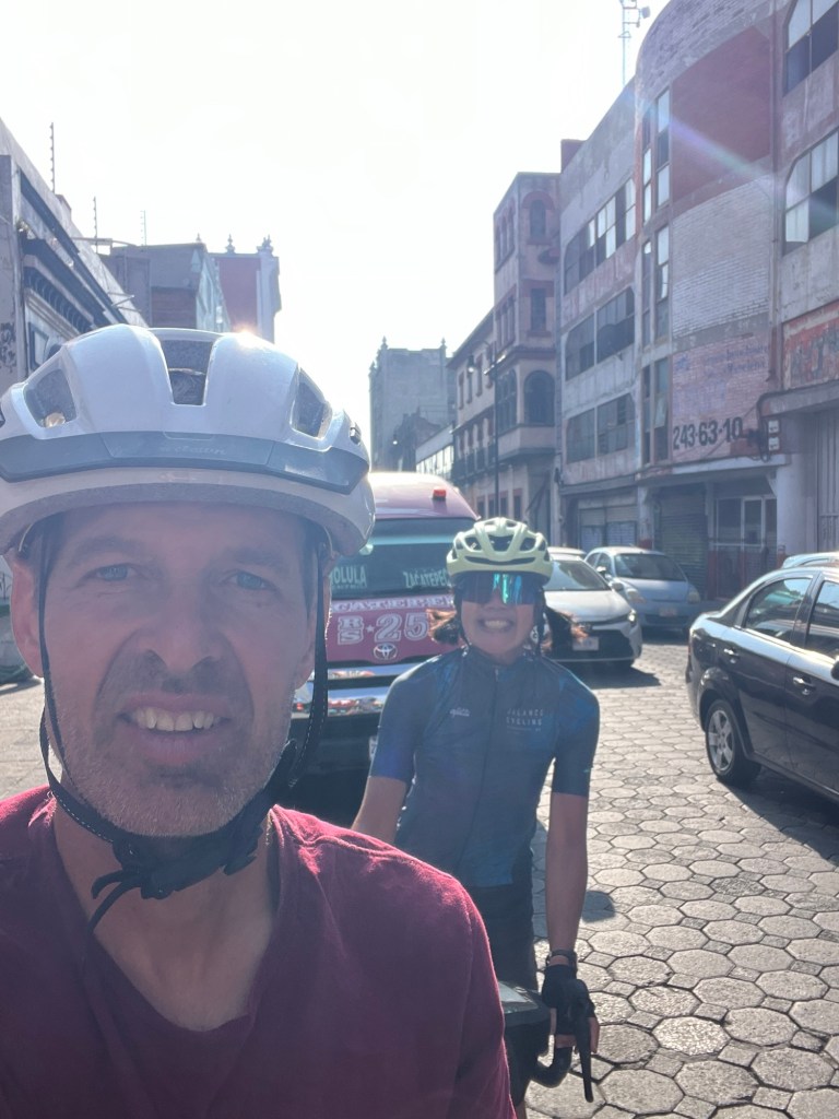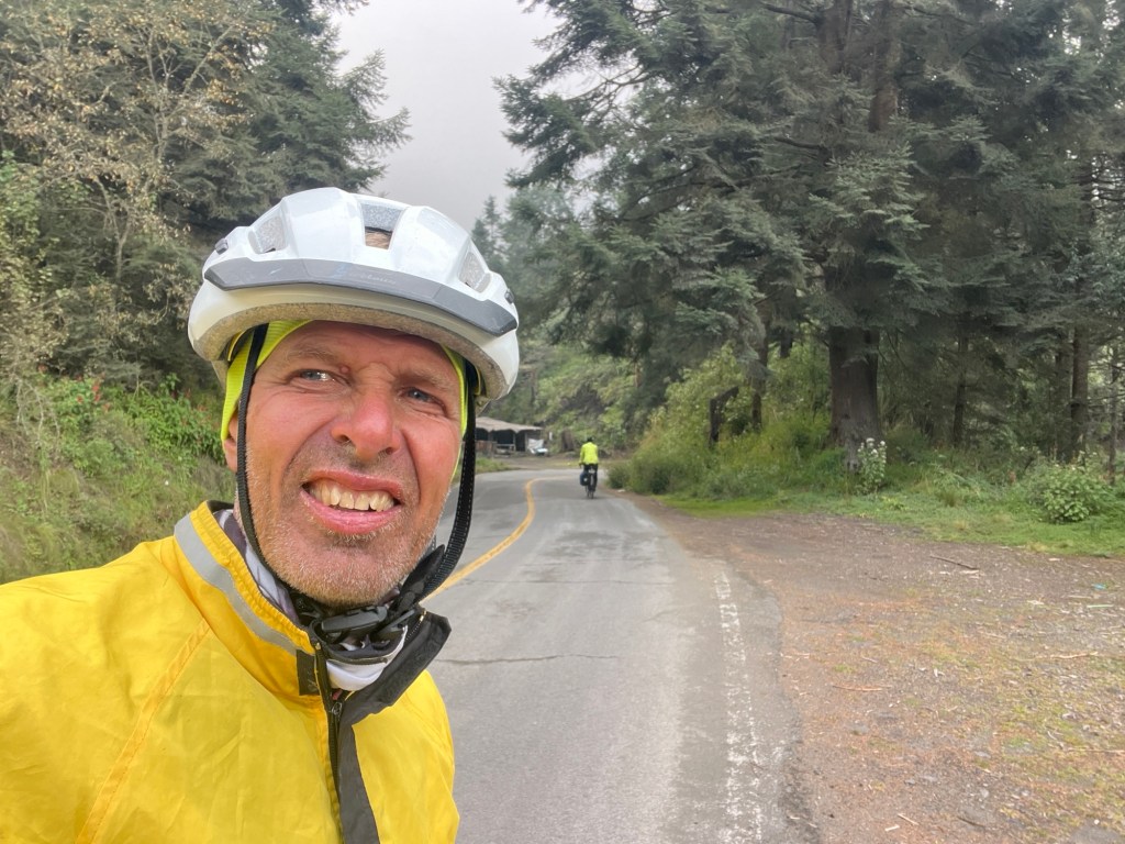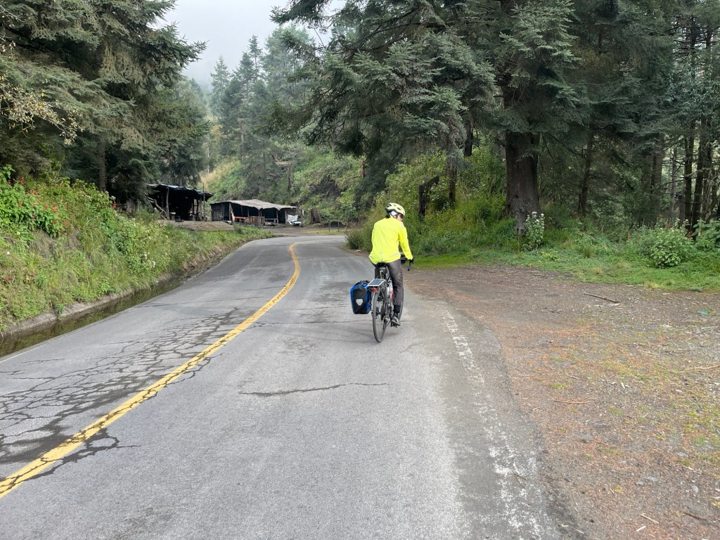 I also check more generally about roads to the Paso – and I see a comment from someone else (I don’t think a biker). Went something like this: “More of an adventure than we were expecting to visit the Pasó from the Puebla side. There’s no paved road from there. But there is a paved road from Mexico City.” That’s a relief. Because we might be able to go up a dirt road. But we definitely are not going back down 5,000 feet on a road like this . . .