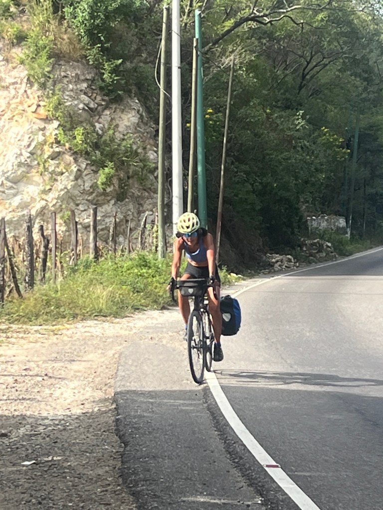 So we’re heading up the first big ascent of the day and about half way up the cars and trucks and buses and motorcycles are all backed up – just inching along. I thought there must be a semi that had broken down on the big hill or something. Didn’t matter. We start picking our way through the traffic – and it’s kind of fun to be faster than all the vehicles.