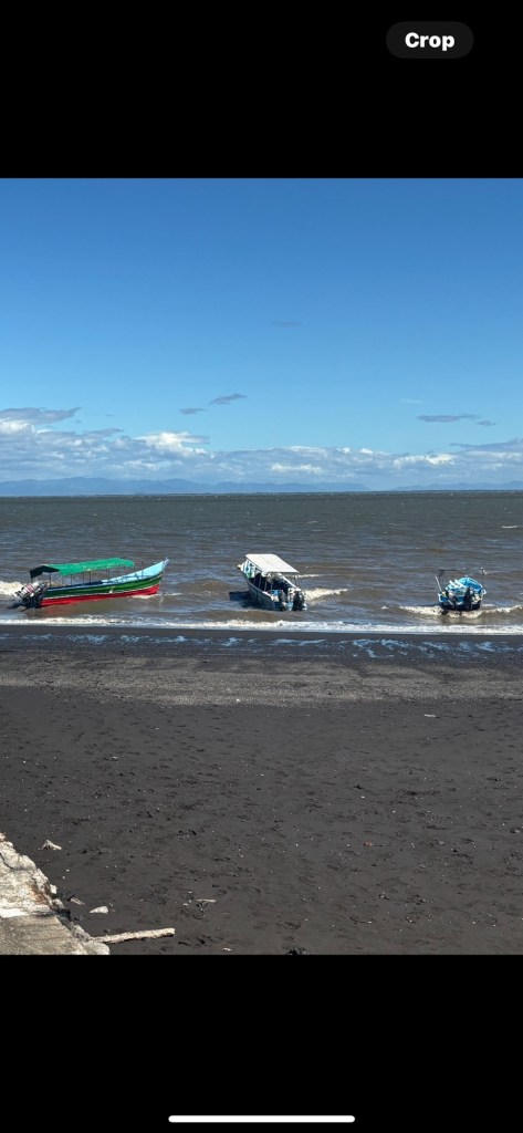 Eventually we make it though. I would say the majesty of Nicaragua – except what we’re looking at is two old piers, broken and dilapidated – jutting out from a lonely beach. There are two other boats – like ours – anchored just off shore. It seriously looks like we have gone back in time to Christopher Columbus days. We half expect pirates to appear at any moment . . .