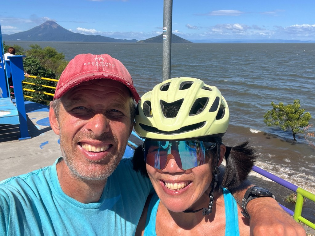 We biked past, and ate our panned lunch, on the shores of Lago Xolotian – a fresh water lake that, I guess, is home to some crocodiles. (Diana did not swim . . . Although it was windy and wavy – which probably has more to do with her restraint than the nasty reptiles . . .)