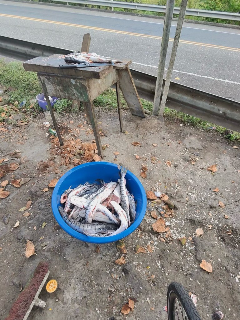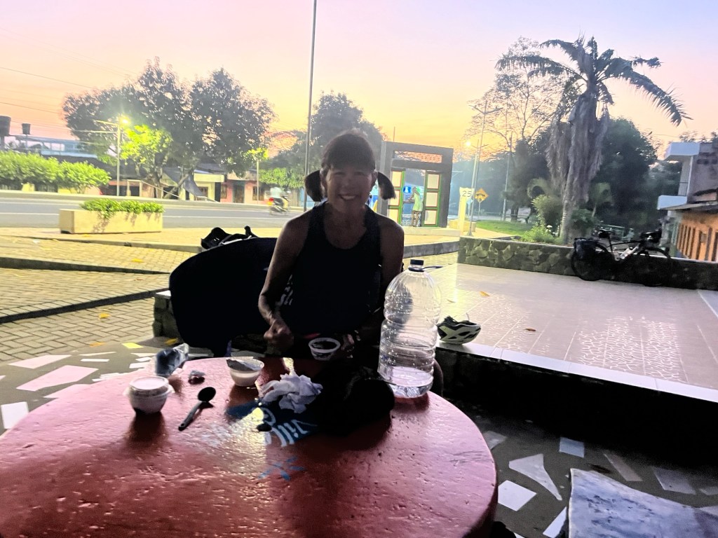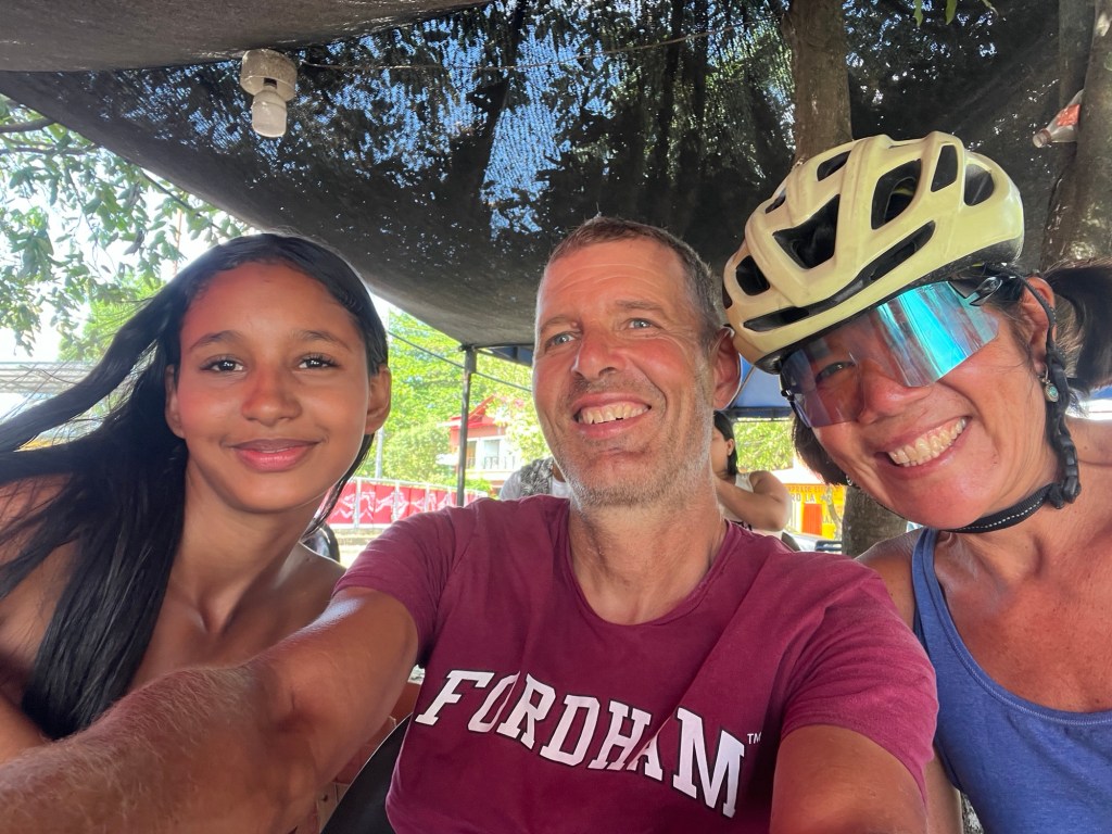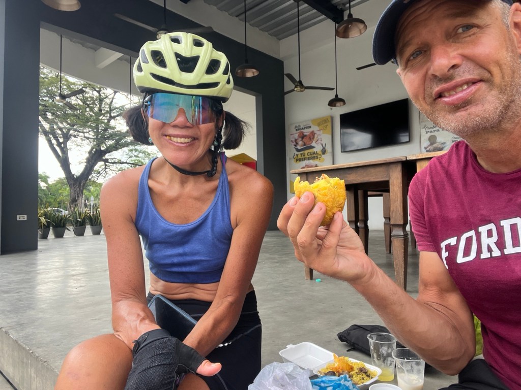 It’s not like there weren’t any other places to eat. There were plenty of them. Lots of little stands. But they were basically the same food that we’ve been eating for breakfast and lunch every day. Arepas, empanadas, patacones, and tamales. Good and all, but our third fried meal of the day? Not what we were really looking for after a full day of biking . . .