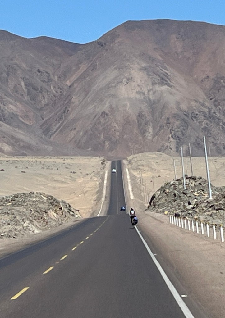 I guess Chile is two hours ahead of Peru (same as Mountain Time Zone for now) meaning it will be light out until about 8:30. We’re looking forward to that. Usually we get going around 8 in the morning. If we continue that pattern in Chile we’ll be heading out about sunrise – meaning more early morning riding. Especially good in the desert . . .