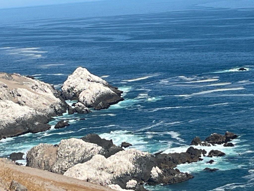 After Ite – the town with the river delta – we came upon the most beautiful section of coast that I’ve ever seen. Rocky – in that Big Sur kind of way. Huge powerful waves splashing up on the rocks. Some of the rocks crowned in white from the salt left by the big waves. Pretty aquamarine colors. And completely unspoiled – generally not a soul around.