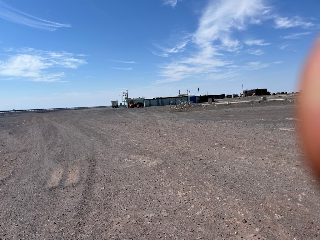 Remember the Lord of the Flies campsite we stayed at in Texas? We’re currently enjoying Lord of the Flies, Part II – Haroldo’s Posada. We pulled into this “posada” a few hours ago. I don’t know what the definition of this word really is, but in the Atacama it apparently means any ramshackle shack that someone might offer some type of food or drink out of. They’re always dusty. The menu is always limited – and offered on more or less a take-it-or-leave-it basis. They may or may not have the offerings advertised on their signage immediately outside the buildings – usually not. The buildings are always in various states of disrepair. And, if you’re lucky you’ll find a posada every 25 miles or so.