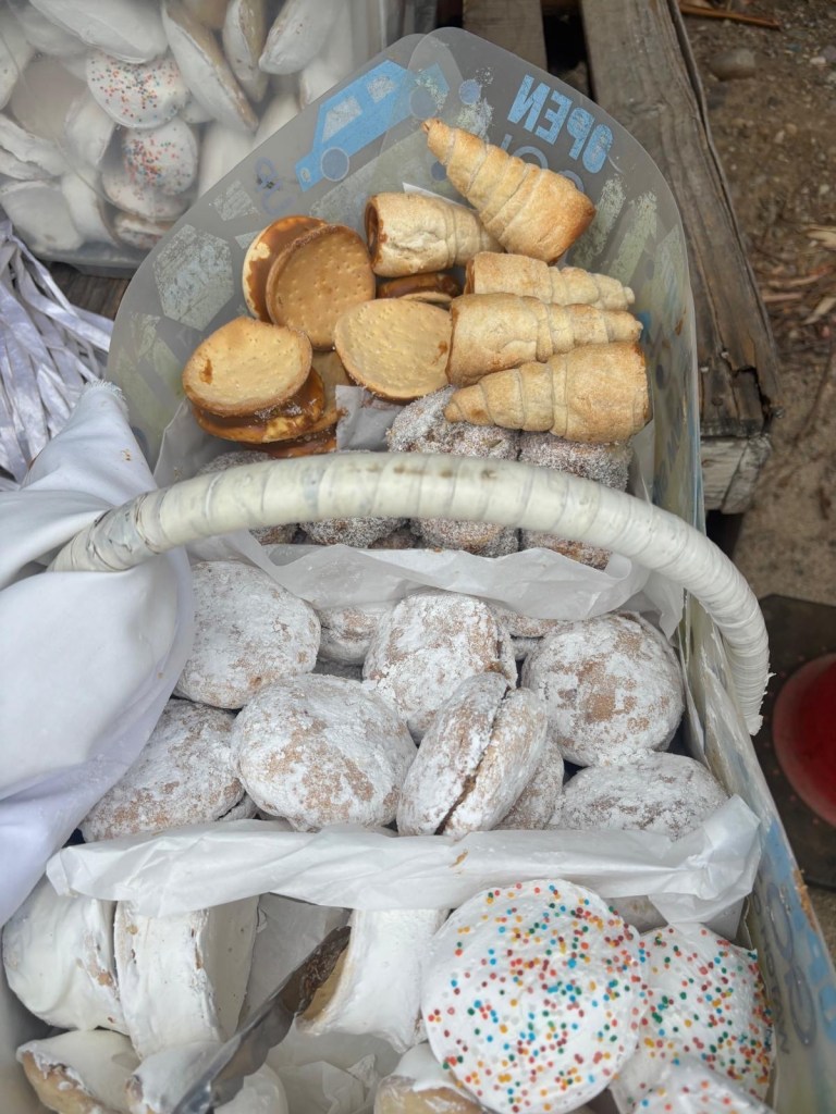 We stopped at a stand run by a kindly older woman. She showed us a bunch of different pastry type items in a basket. We bought a few of them – but when we asked her if she made them herself she said no, she just bought them. Looking around, all the stands had the same basket and, my sense is that all the stands are just re-sellers. In other words, there’s no distinction between one and the next.