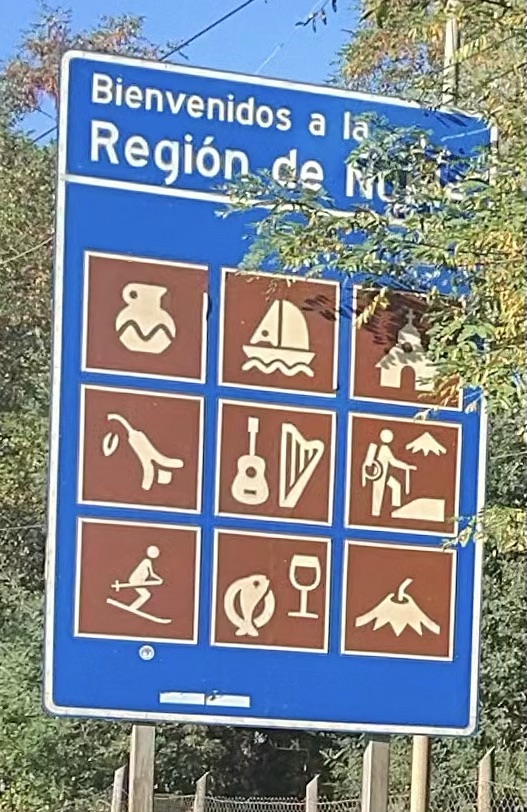 If I lived in South America a thousand years ago I would definitely want to live in this valley. Grapes and wine. Onions and tomatoes littering the roads. Pine trees and rivers and streams. No trash everywhere . . . And you can breathe – not like Machu Pichu – which is so high it must have been difficult to even sleep. Oh, and there’s skiing around here – as evidenced by the sign, below.