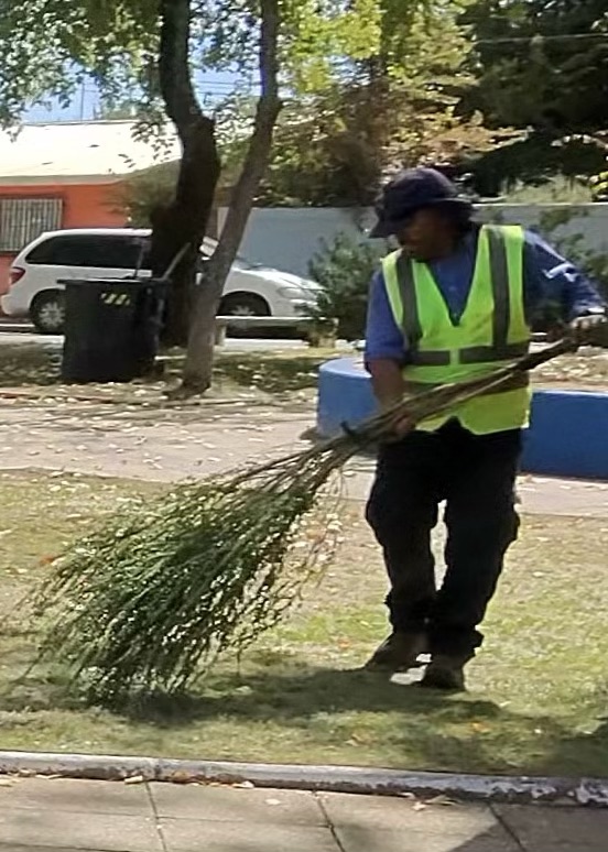 Latin America is so into sweeping. This guy is sweeping the grass in the park…