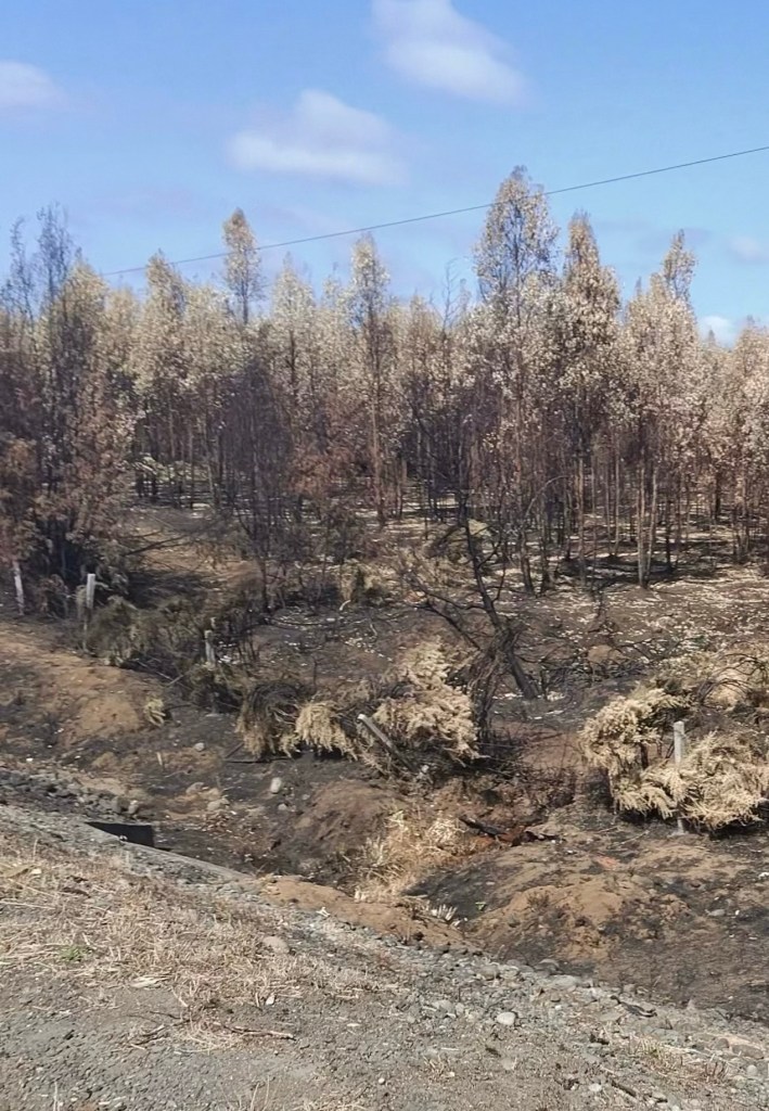 Did I mention that the riding has been really nice? A little bit more rolling today – but nothing too crazy hill-wise. Pine trees, pretty rivers, and bucolic scenes have made for some very pleasant days. On the not-quite-as-good side, though, we did bike through a lot of fire-damaged landscape today. Reader Mike T warned us of this months ago – when, I think, the fires were still raging. But didn’t seem real then . . . I guess something happening thousands of miles away in a place you’ve never been can seem like it’s happening on a different planet . . . Well, we’re here to tell you – it’s real alright . . .