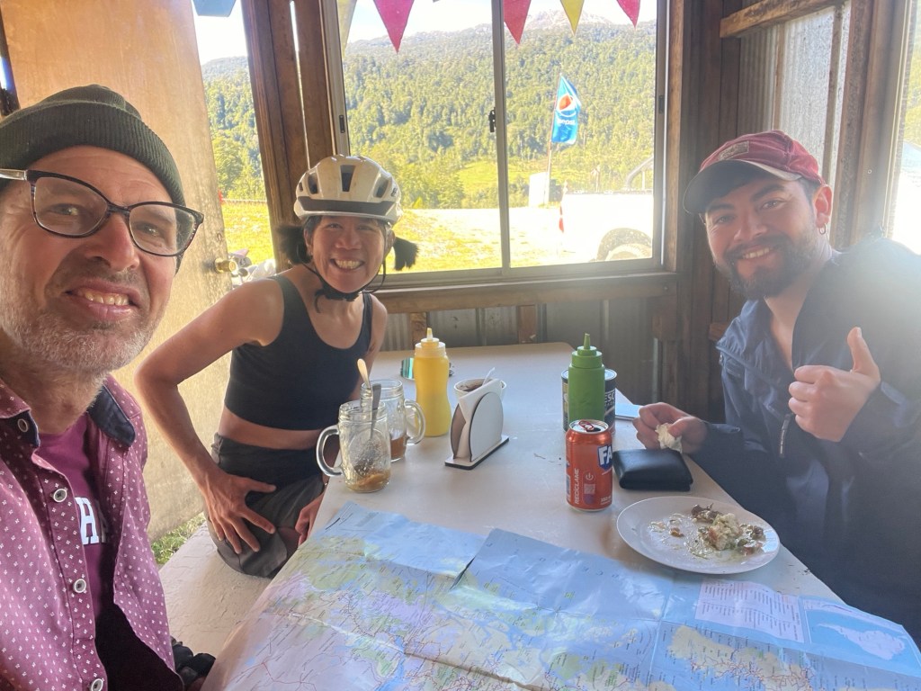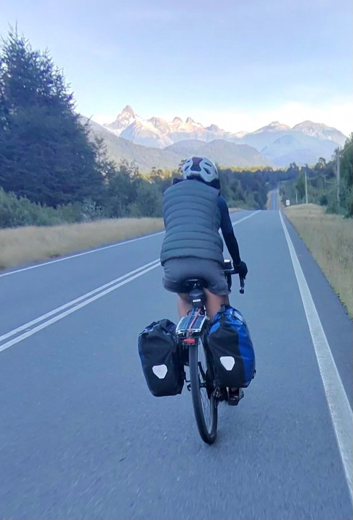 From Punto Arenas – in the far south of Chile. A city we may end up going through much later. Rodrigo’s been biking for a while now. He told us that he skipped the ride from Punto Arenas to Puerto Natales because the area is not that interesting – all flat, no trees – and there is a consistent wind that makes it almost impossible to bike. We would be going the opposite direction – so maybe the wind would be better – but we’ll have to think about that . . .