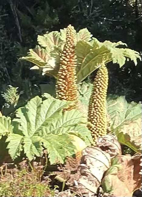 And then Diana and I have become very fixated on what we call the Giant Man-Eating Rhubarb. Huge leaves that look like if you came too close they would reach out and grab you. Giant pod things that make the plant look like it came from a different planet. And our resident sceintist – Dr. Liu – noticed these strange “female” parts as well – kind of giant blobs of yellow jelly-like stuff. Crazy the things that evolution brings to the world.