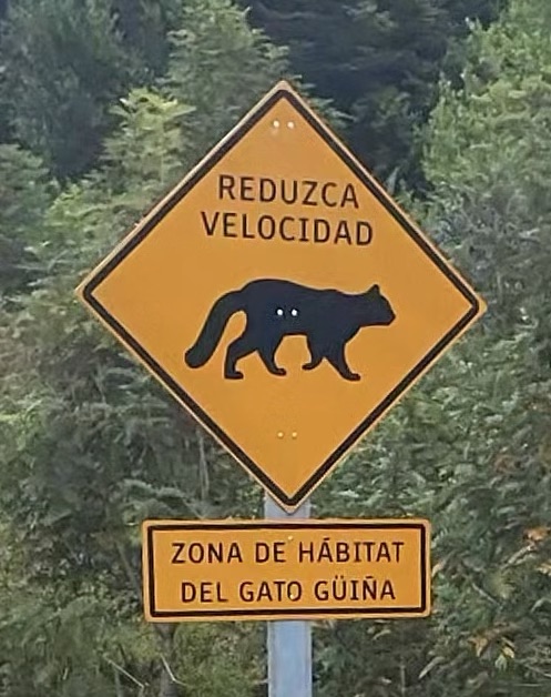 Cool to see a sign for the Kodkod (Leopardus guigna), also called güiña, the smallest felid species in the Americas, native to southern Chile. Hope you get to see one of those. Here’s a link to more information on it – https://en.wikipedia.org/wiki/Kodkod.
