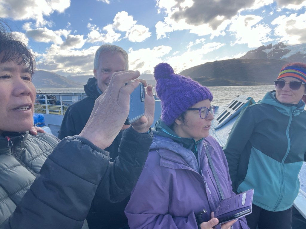 Glaciers. I guess glaciers are supposed to move – otherwise they are just ice fields. I’m not sure how you determine if they’re moving – because if they do move it’s not like a dog or something – more like a super-slow sloth. But the other marker is the blue of the ice. And we definitely saw some of that. So I’m saying we saw glaciers.