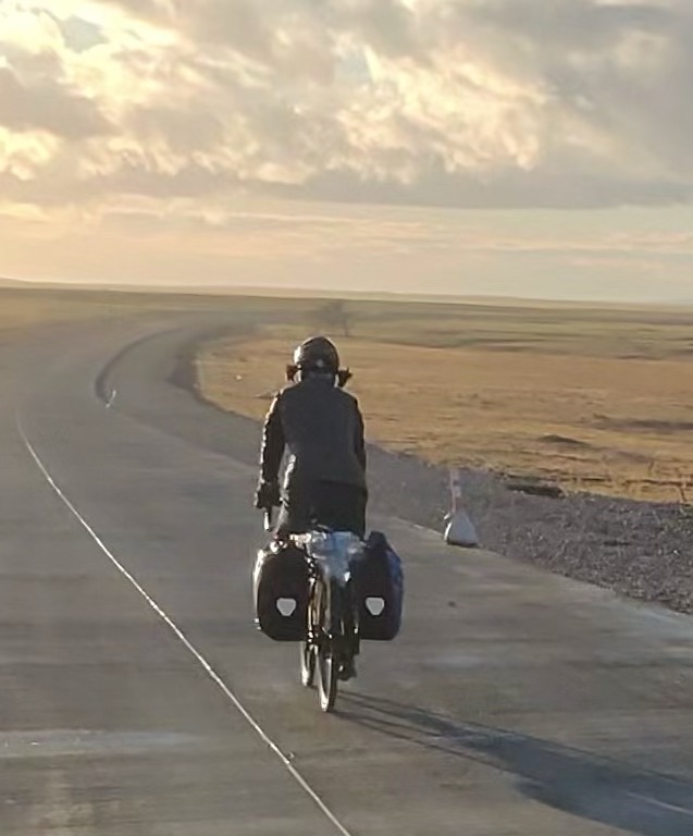 What a great picture, Diana biking with the Wind as indicated by the wind blown three behind.