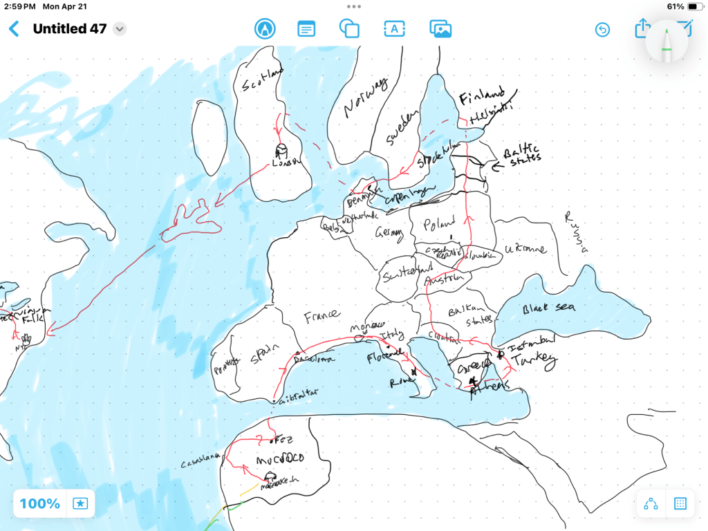 From Istanbul we head north through the Balkans, probably go through Croatia because it’s on our “list,” and then hit Slovakia – where our new friend Ivana lives – then Poland, and the Baltic states, Finland (skipping Russia because, well, because it’s Russia . . .), then Sweden, Denmark, and, hopefully Scotland – before finishing the European chapter with a ride to London, where Diana’s cousin, Angie, lives.