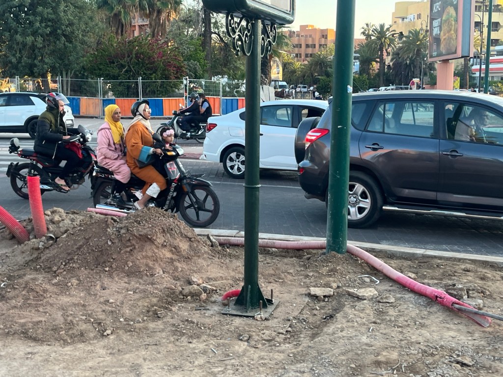 Our first impressions of Morroco were kind of fun. We’re heading down the road and there are a few other bikers. Nothing fancy – just some old men trying to get from point A to B however they could. And then we see a person that I presume was a woman – aggressively driving a moped down the street. I say “presume” because we couldn’t see the person at all – just maybe the slightest slit for the eyes. All dressed in black. I’m thinking this was a woman in her burka – but, again, hard to know . . . Might have been a man who just robbed a bank . . . The moped – probably topping out at 23 mph – might not have been the best option for an escape vehicle – but maybe his lack of a car is why he robbed the bank in the first place . . .