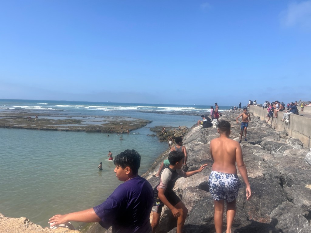 Then, where the Bou Regreg River meets the ocean there’s a whole other beautiful area. People diving. River boats. Families playing.