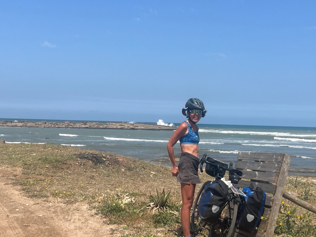 Today’s ride? Amazing. Unlike Latin America, Morocco seems to pave its secondary roads. Upshot is that we were biking on a much slower, much less trafficy, boulevard along the ocean. Lots of swanky houses to admire.