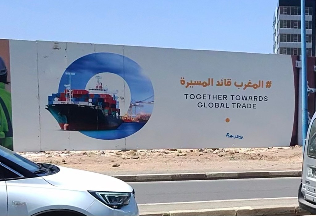 I want to take a moment on something I was thinking a bit about as we wandered the mosque. I started thinking on this direction as we biked into Casablanca. We passed some construction site with a bunch of banners that said things like: “All Forward Together,” and “We’re All Building a Better Morocco.” And, really, there was a ton of construction around Casablanca – big overhead cranes everywhere.