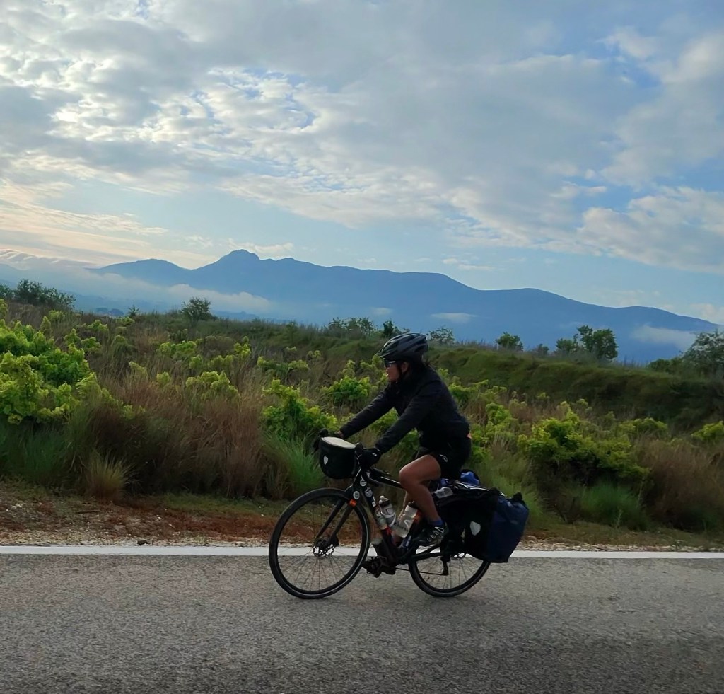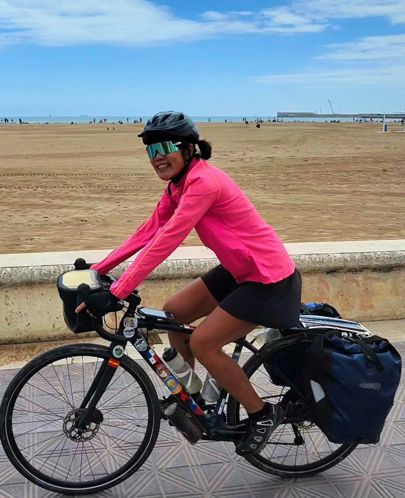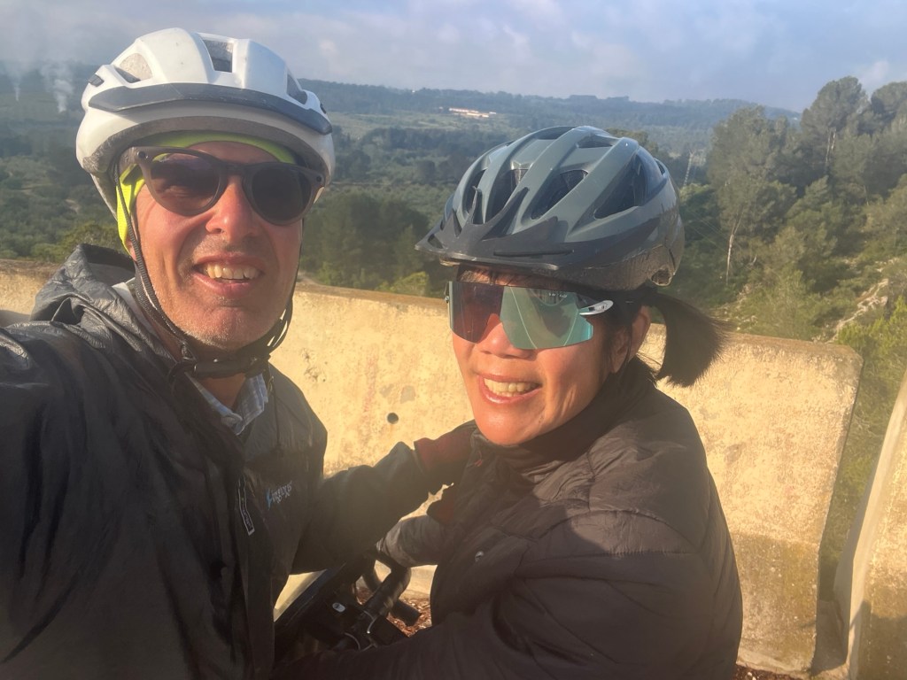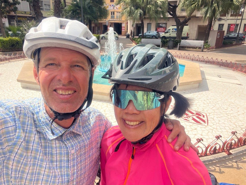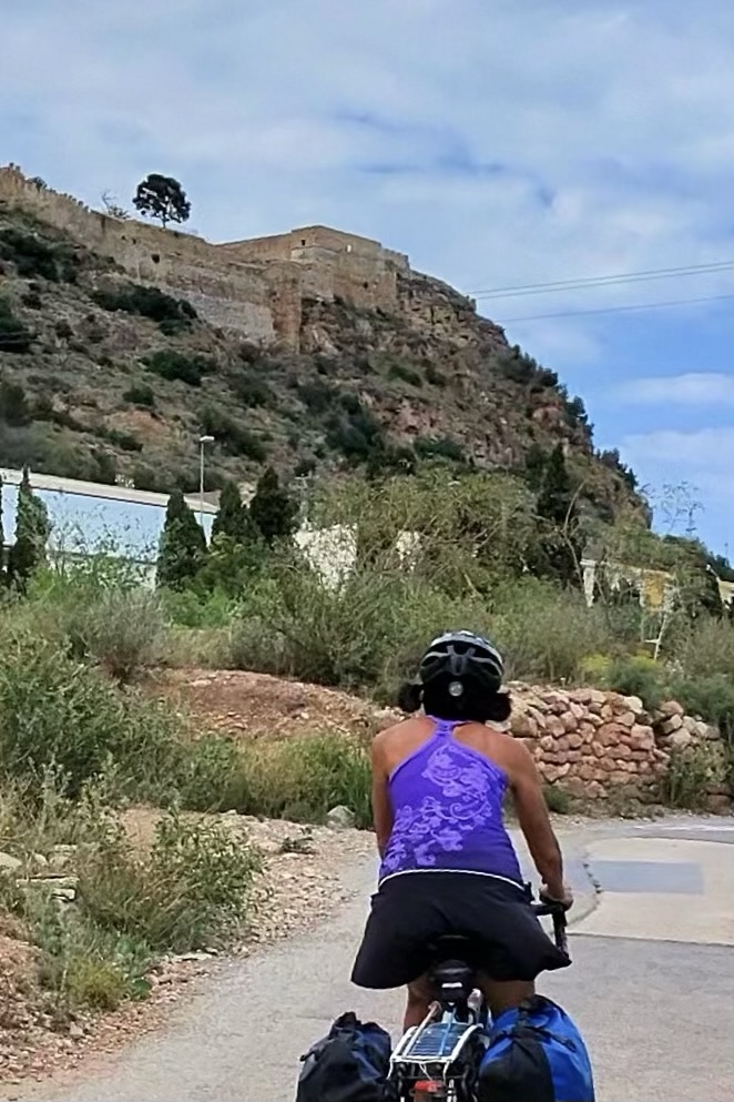 Very striking. Otherwise lots of orange groves. Lots and lots. And today we wound up at a campground on the beach. I mean, the tent site is not pretty. But the Mediterranean is literally 50’ away – we can hear the waves crashing – and, like in Valencia – the beach is nice and clean. What’s not to like? I guess this is why people like to bike around here . . .