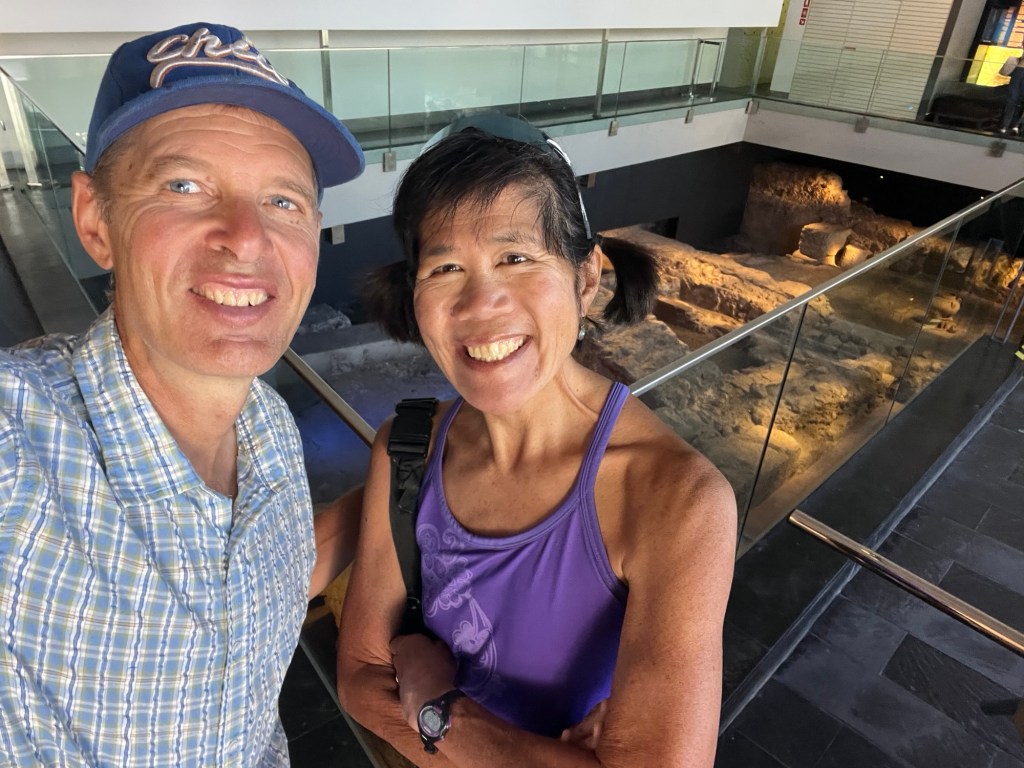 Below the old town? Like layers of sediment down . . . old Roman Ruins. Where the central square in the old Roman town was they have dug up the ruins and created an archeological museum. Pretty impressive. They even created a space where you can walk around above and look down through a fountain into the ruins below. So cool!