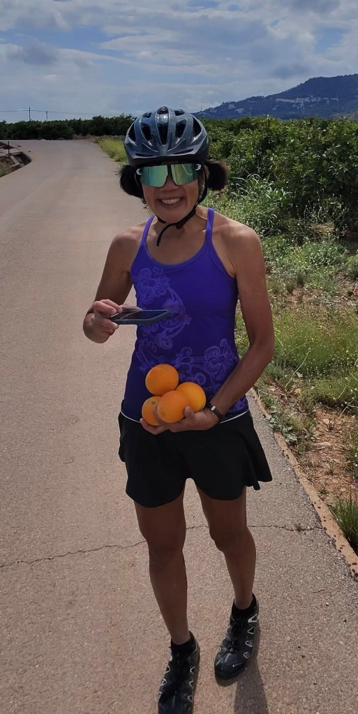 Biking into the city yesterday and out of the city today we wound through miles and miles of orange groves. Big oranges and little tangerines. Lots and lots of oranges. As many oranges here as there were olives and almonds in the mountains.