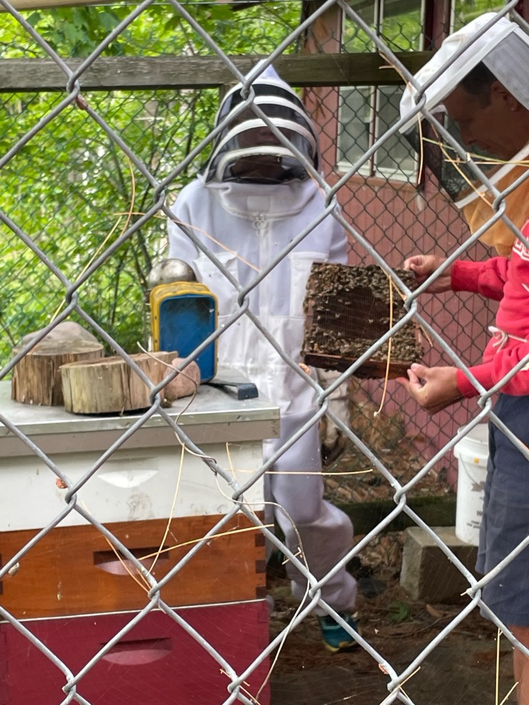 Splitting is when you take about half of the bees and a good chunk of the brood (the larvae and baby bees) and you separate it from all the other bees – especially the old queen. The separated bees – now being queenless – make their own new queen.