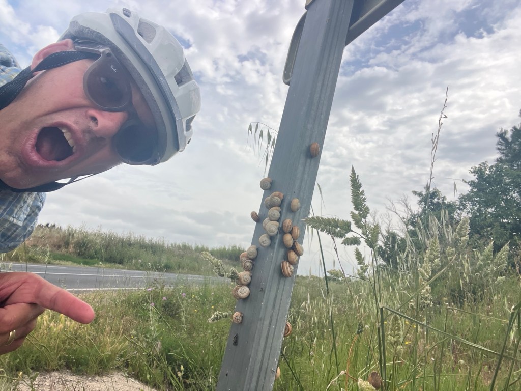 People walk around collecting them. We saw this cute older couple in Peniscola; they were out gathering snails on the dunes. We saw them while we were having breakfast.