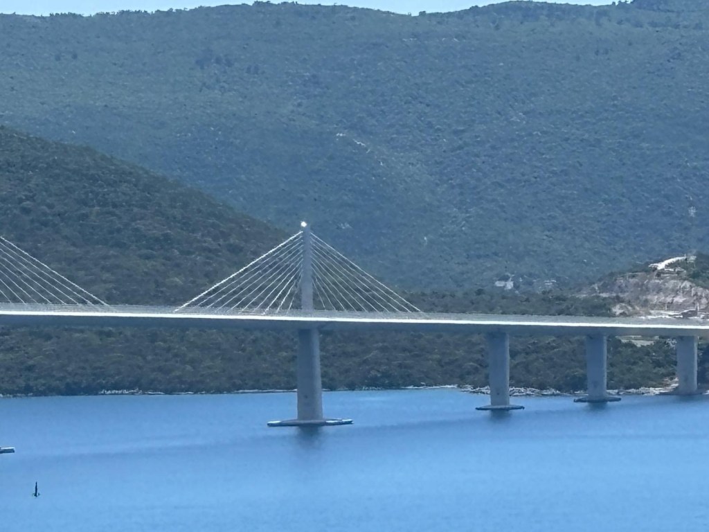 Today was, of course, not quite a normal day in this regard. Turned out that we had to make another adjustment in our routing. We had been planning to go over this big bridge onto this peninsula that juts out into the Adriatic. Looked pretty cool.