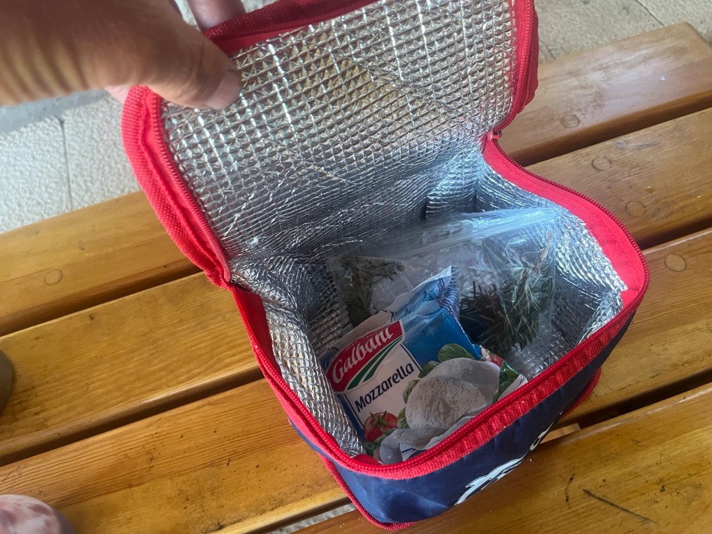 There’s the cook stove, our one pot, our two metal mugs, our two bowls, our two eating spoons and our one larger stirring spoon, the coffee grounds, the tea bags, the oatmeal, the nuts and raisins we put in the oatmeal, the apple we also put in the oatmeal along with the “cutting board” (a thin sheet of plastic that pretty much does the trick), an absconded roll of paper towels, our salt shaker, and our little lunch box sized “refrigerator” (a zippered lunch box that we bought at a Chinese goods store; it’s lined with that reflective metal stuff that is supposed to hold in the cold) with our cream and butter. Oh, don’t forget our small wooden butter knife – also purchased at the Chinese store. And sugar – we have a small bag of sugar with a little screw top that we found a few countries back. Pretty handy. Finally, Diana’s yogurt. She tries to have yogurt most mornings – although there are times that she has trouble finding something that meets her rigorous cultured dairy standards . . .