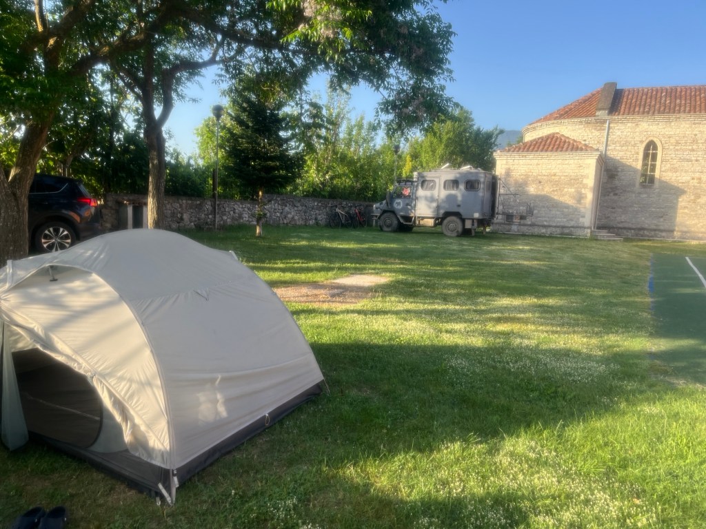 It’s a day later now – and I’m sitting in a churchyard campground writing away. And I have to say, Albania is probably my favorite country that we’ve been to.