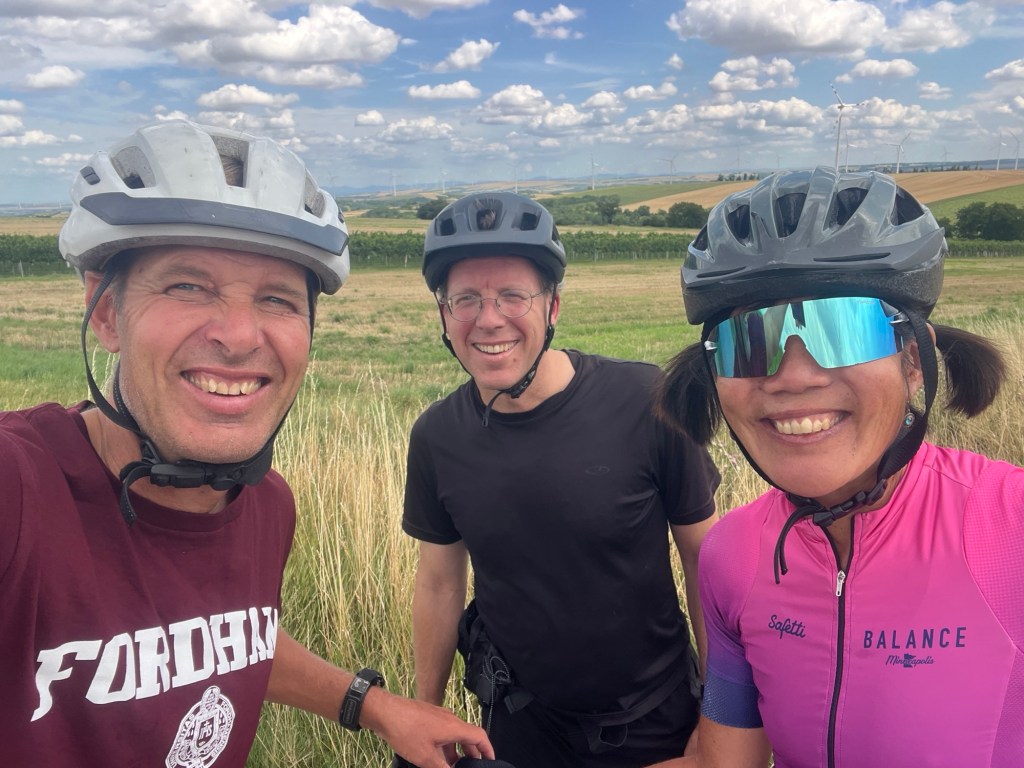 It was great to have you with us in Vienna and to ride with you to Valtice! I am sorry that you were somewhat traumatized — you have to come again so that we can show you all the great things about this place, and I don’t mean the palaces (which leave me rather cold) and other hoity toity stuff, but rather the diversity, the neighborhoods, the rather functioning social system that cares for the less fortunate (more or less) and does not kick people when they are down. Your account reminded me of the impressions of the US reported by German relatives and friends, for whom the US was hamburgers, shopping malls, cars, and friendly but shallow people — a kernel of truth there, but of course missed a lot, including all the things I love about my native land.