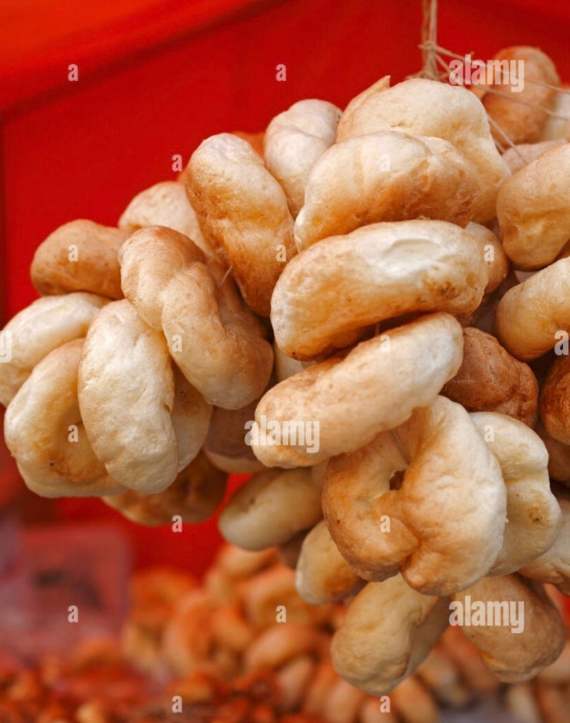 It’s lunchtime and we’re hungry, so we stop. On closer inspection there are big bundles of bagel-like things – tied together with a string, which winds its way through through all of the bagel holes. We try to ask what the bagels are – but the vendors don’t know any English.