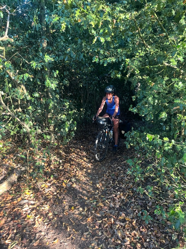 Oh, yes, the roads. As you might expect when you’re riding on downs, they are [very] up and down. Not long gradual climbs where you can get a bit of a rhythm either. It’s up some blimey steep heart-attack-inducing hill, then back down for a bit, but with an abrupt right-angle turn at the bottom – so that you get no real benefit from the descent.