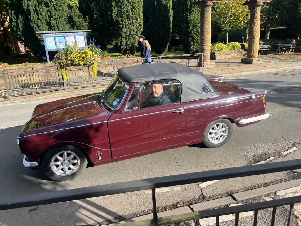 I mention all this because there must be a lot of mid-life crises going on in England. Riding through the countryside on the weekends it seems like every other vehicle is a 1957 Triumph convertible – in mint condition.
