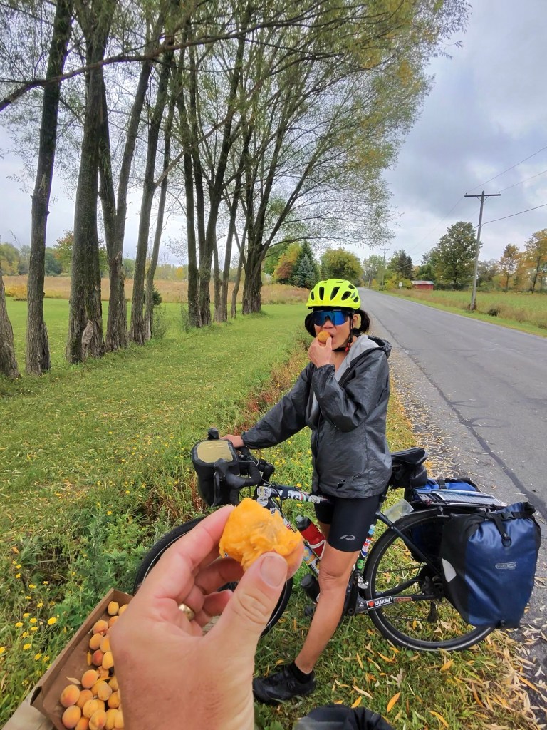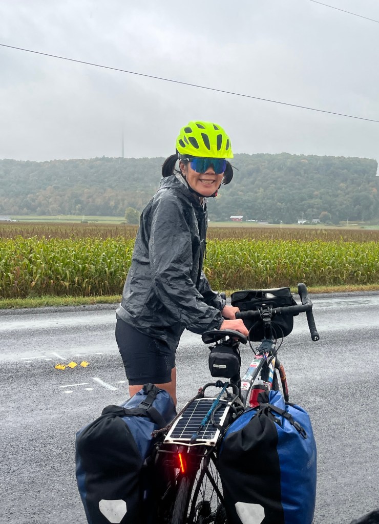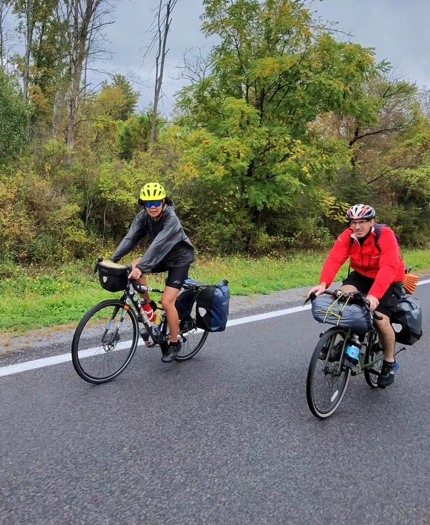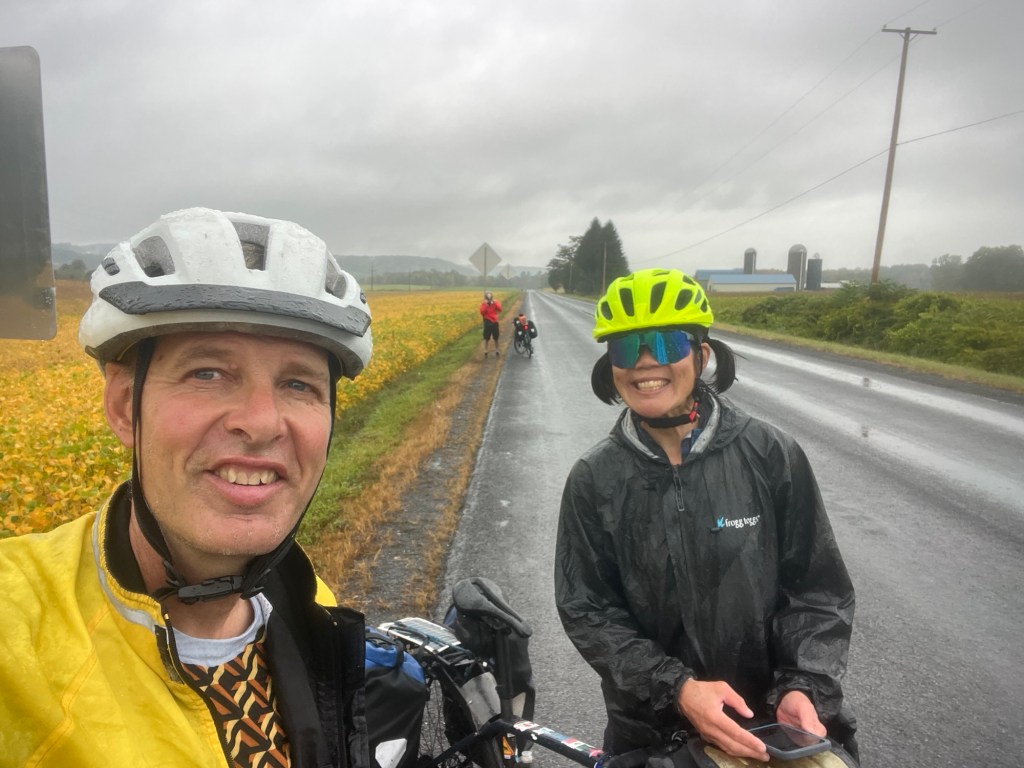 Then there’s the rain. It seems like it’s becoming a habit again. And today was the worst. It was raining when we awoke. It was raining when we left Carolyn and Chris’ house. It rained all throughout our ride. And it’s still raining now.