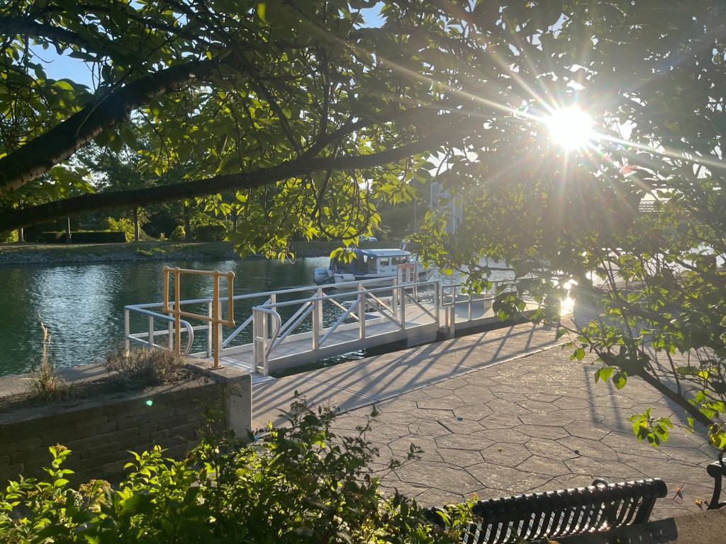 The Canal is still around today – but commercial traffic died out in the mid-20th Century. These days, the towpaths that the horses used to use to pull the barges have been transformed into bike and walking trails. And the only boats left on the canal are of the pleasure variety: fishing boats and yachts, along with a variety of houseboats – kind of Iike what we saw in England – only the boats are wider because the waterway is much bigger.