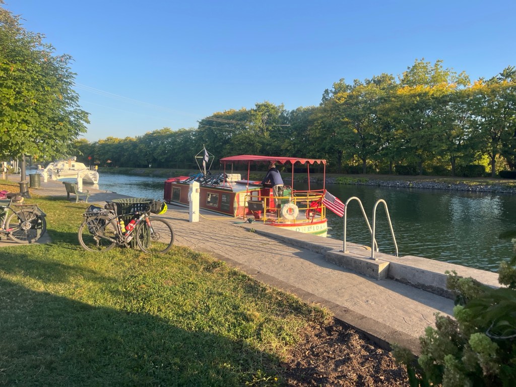We started the day on Lake Ontario and finished on the Erie Canal. We connected with the son of our friends from Arkansas – Gunnar and Maria – exactly one year to the day after we landed at their home in Little Rock.